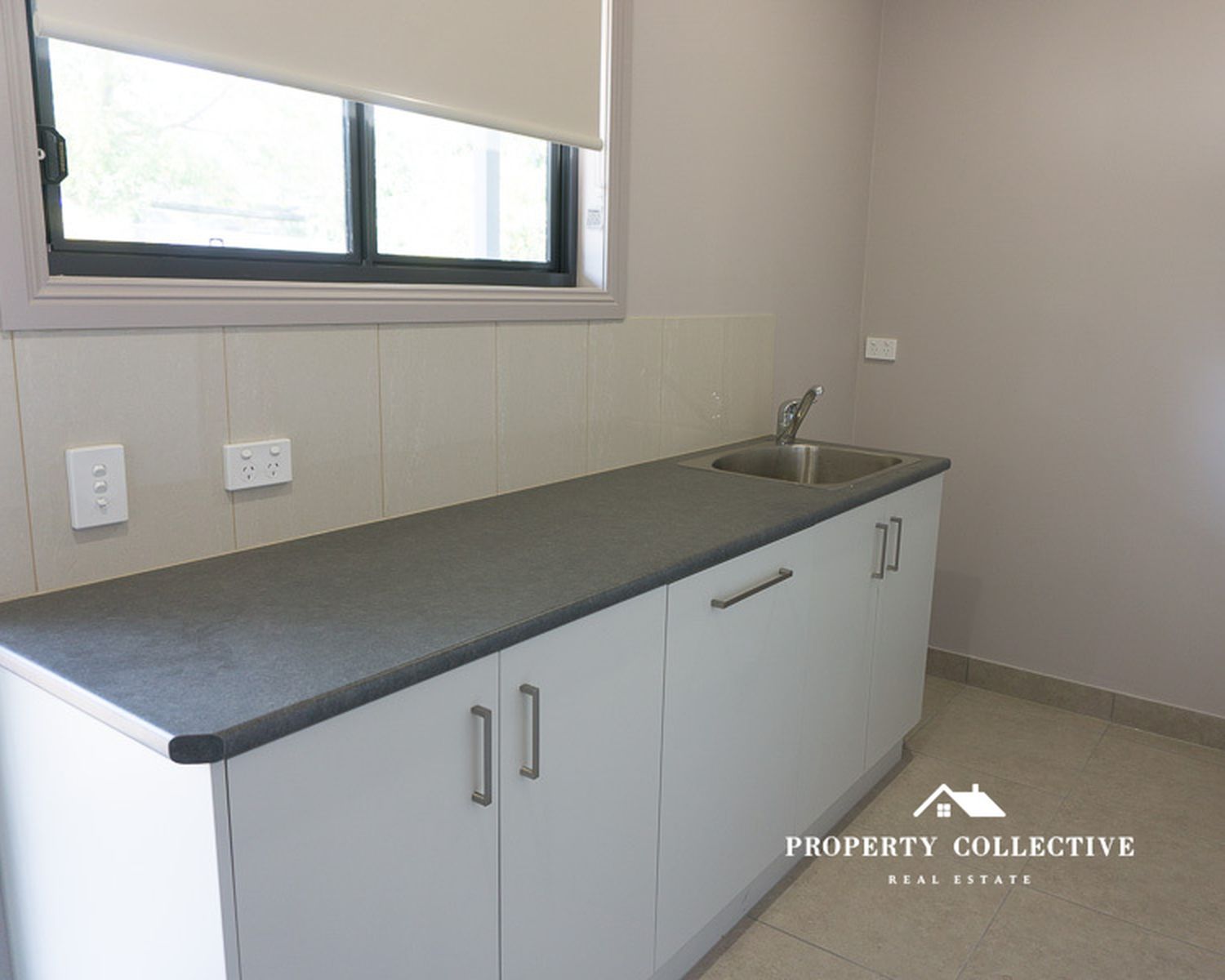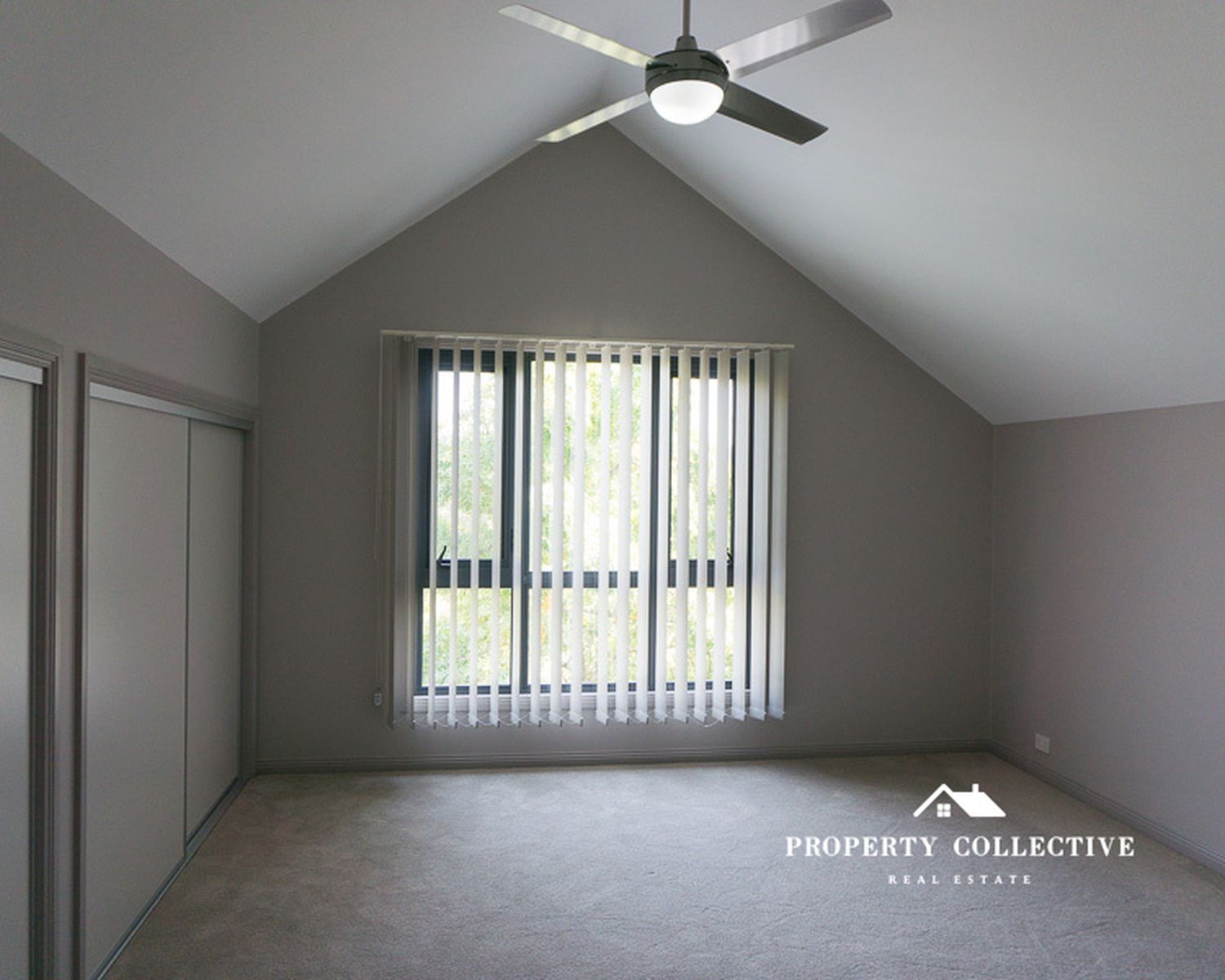 Downstairs, the third bedroom boasts double robes, a stylish bathroom, and a versatile study that could easily serve as a fourth bedroom. The laundry is thoughtfully equipped with extensive built-in cabinetry to keep everything organised.