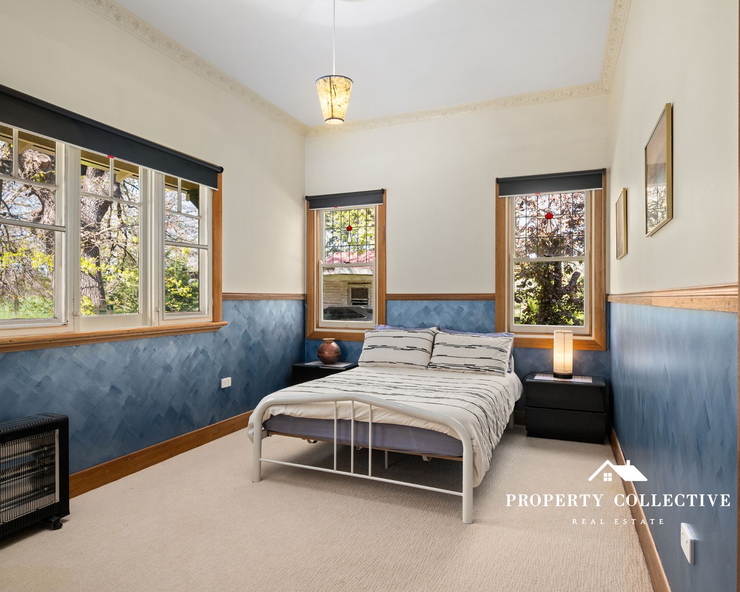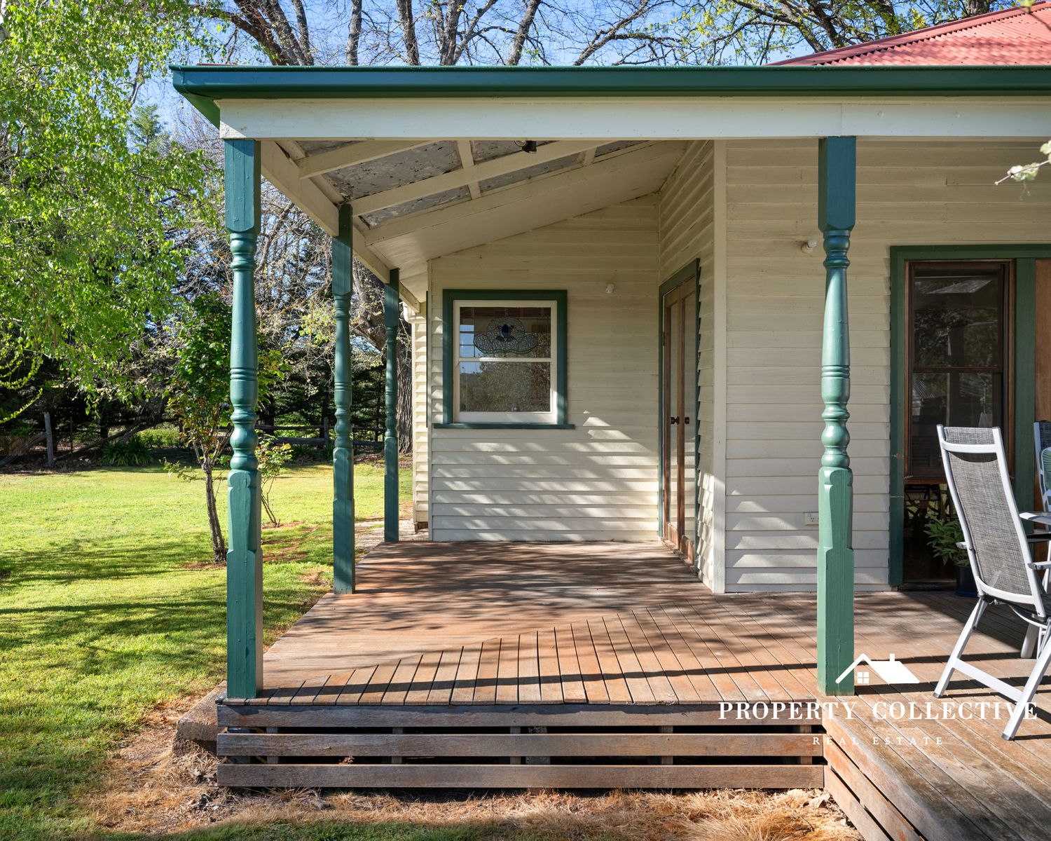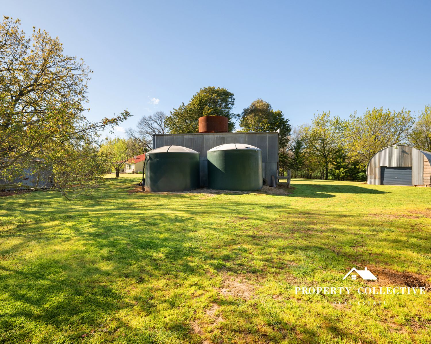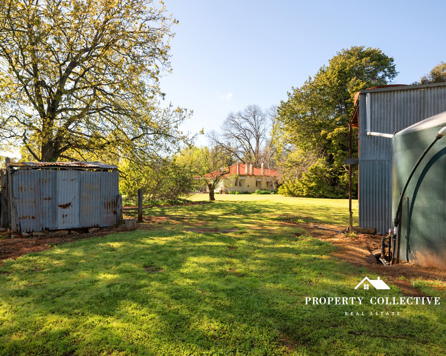 The property offers practical rural amenities, including two rainwater tanks feeding the house, supplemented by a newly installed water bore (delivering ample water), a small lock-up shed with a concrete floor, an old shearing shed, and a round-roof shed with electricity connected. Outside, a muscat grape vine grows along the back verandah, while established gardens, mature trees, and historical features—including the original front fence, old dairy, and a red tank stand from the old steam train station in Chiltern—enhance the charm and character of this unique property.