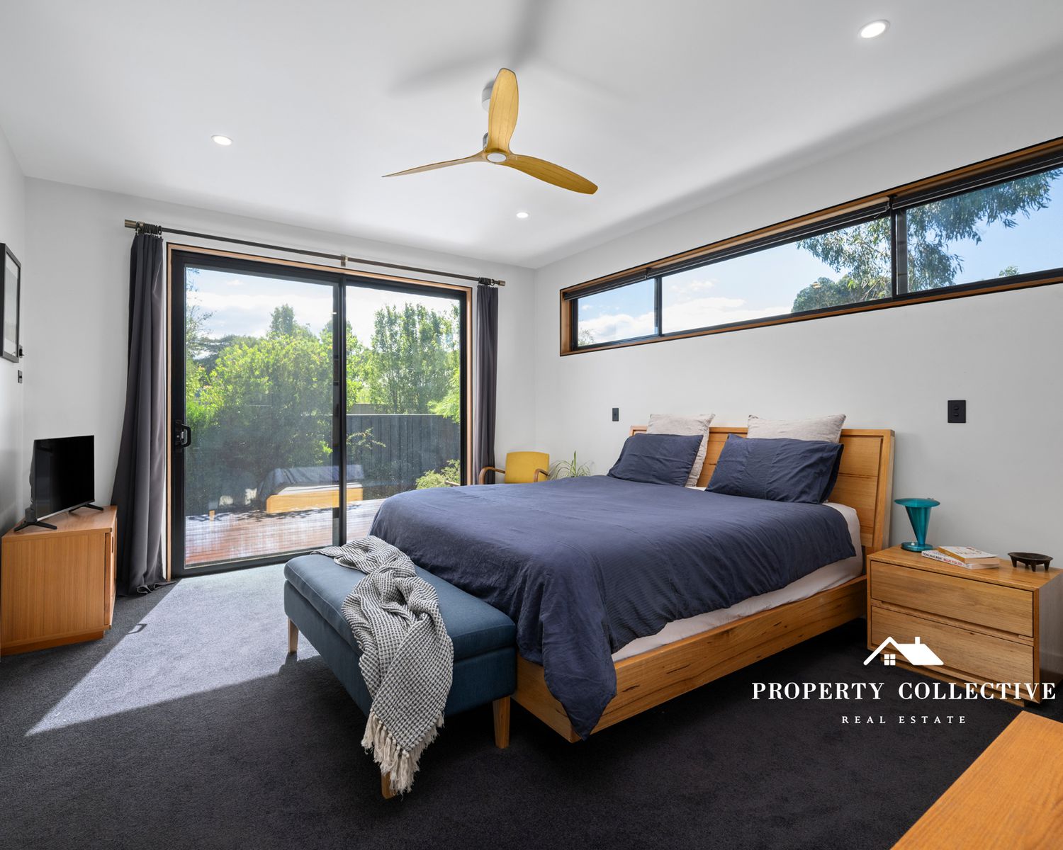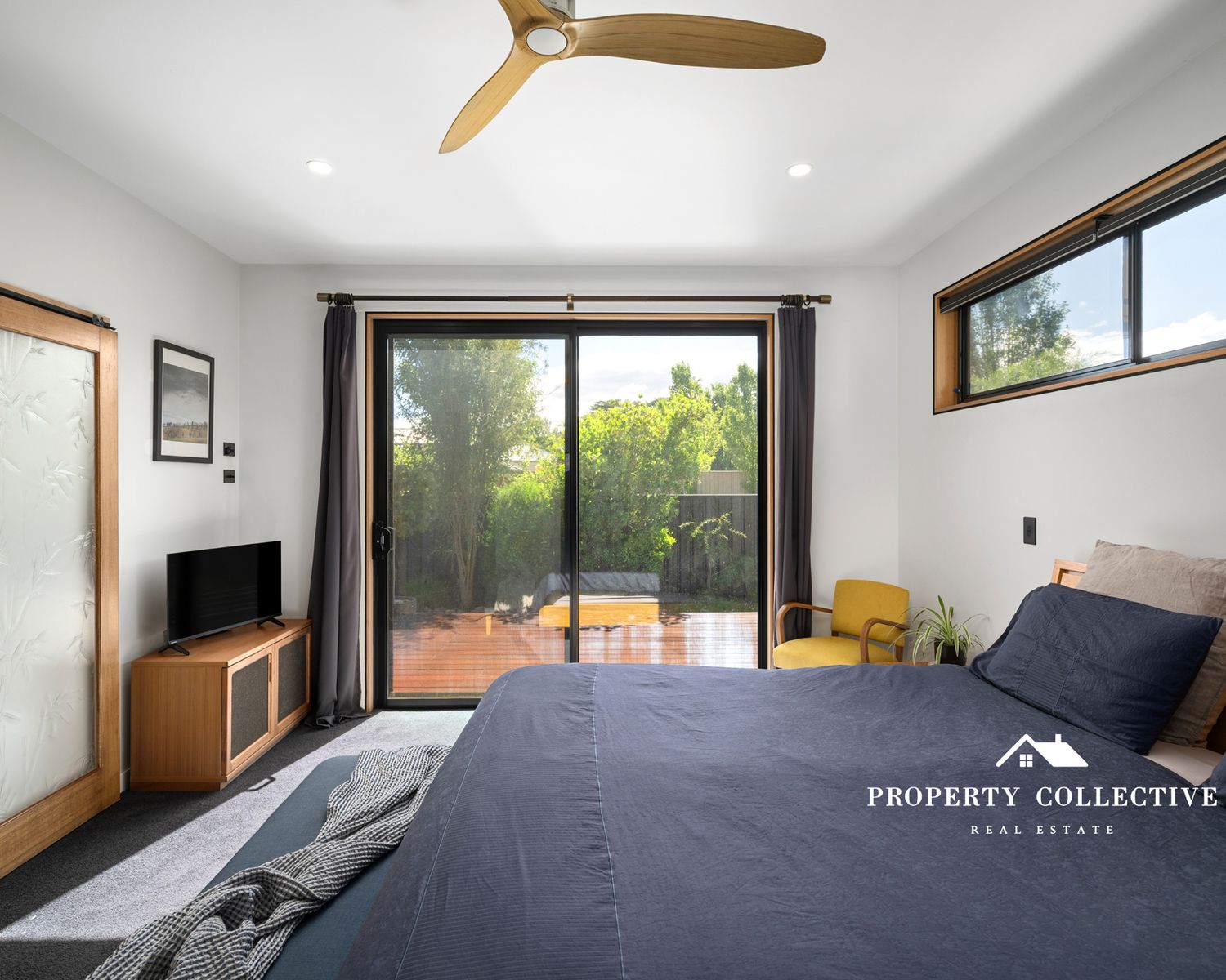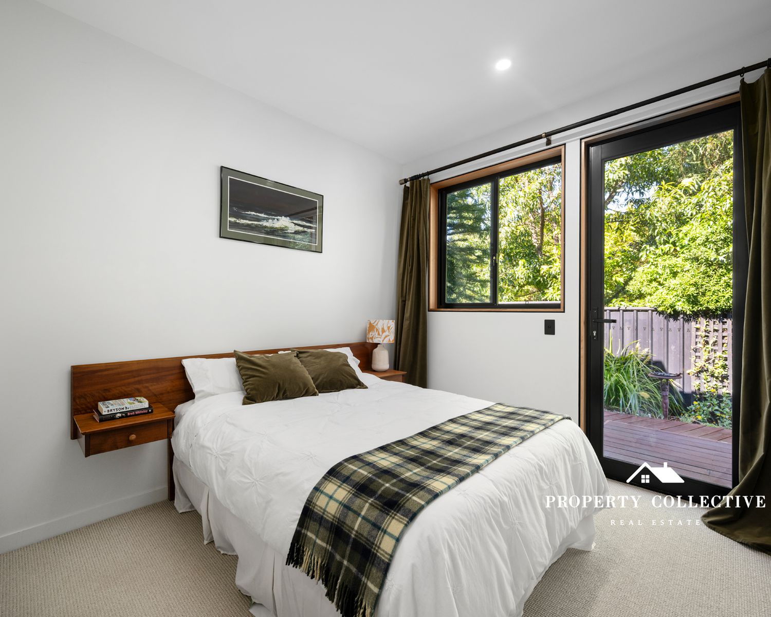 Accommodation is generous, with three bedrooms, all featuring built-in robes. The luxurious master suite is a true retreat, offering garden access, electric blind, a spacious walk-in robe and a beautifully appointed ensuite with double shower and indulgent bath. The two guest bedrooms each enjoy private outdoor access and their own individual decks — perfect for visitors or peaceful morning coffees.