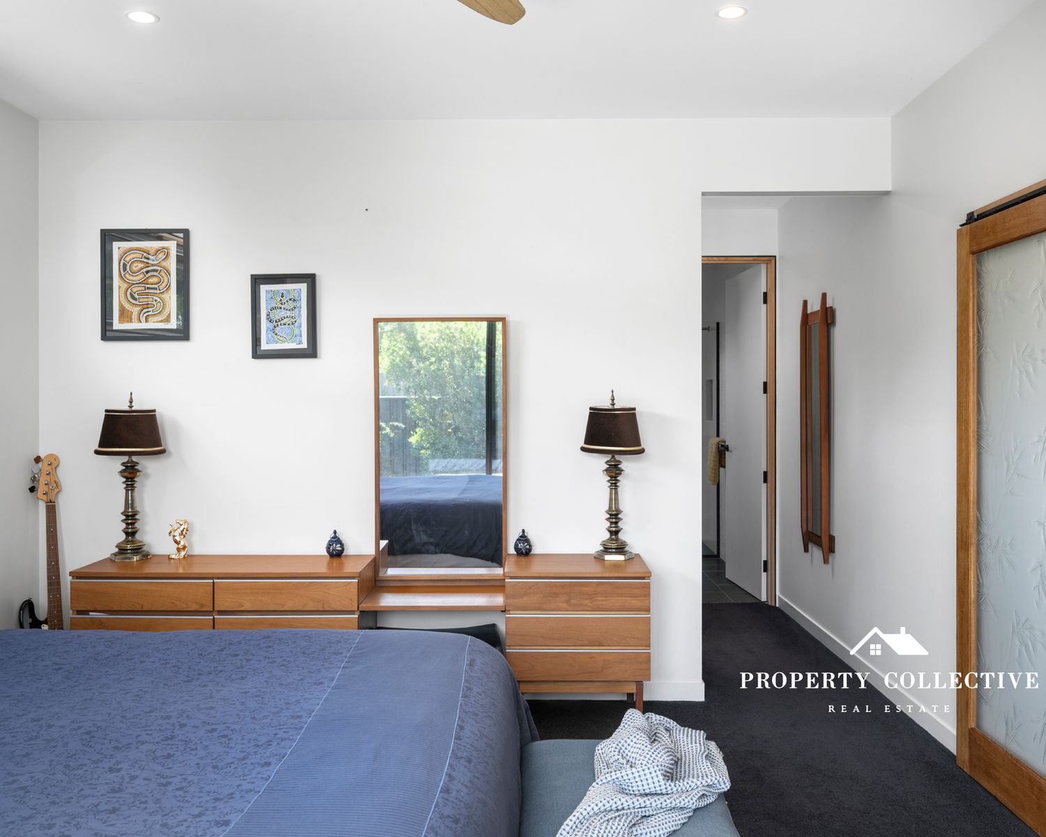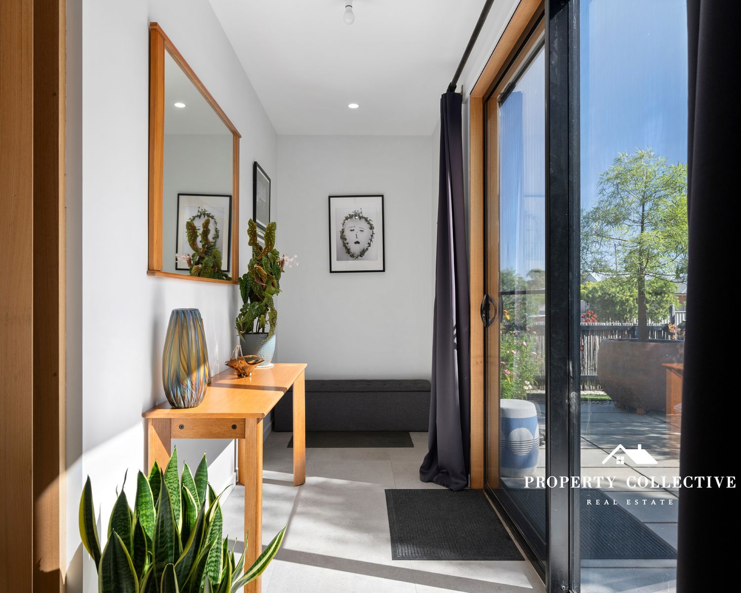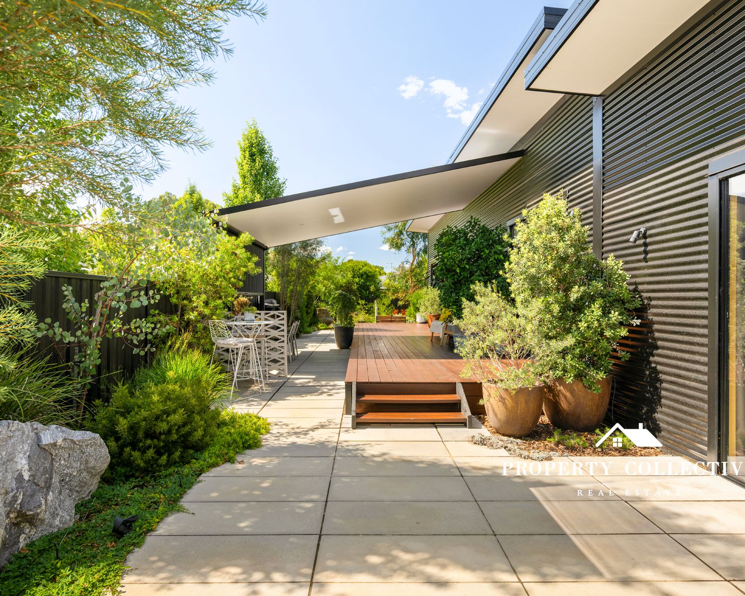 Accommodation is generous, with three bedrooms, all featuring built-in robes. The luxurious master suite is a true retreat, offering garden access, electric blind, a spacious walk-in robe and a beautifully appointed ensuite with double shower and indulgent bath. The two guest bedrooms each enjoy private outdoor access and their own individual decks — perfect for visitors or peaceful morning coffees.
