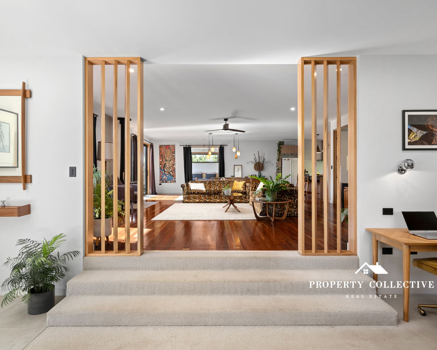 Designed for both style and sustainability, the home features an original residence on stumps seamlessly extended by a modern slab addition. Inside, soaring 2.7m ceilings, 2.4m doors and wide 850mm internal doorways enhance the sense of space and light throughout.