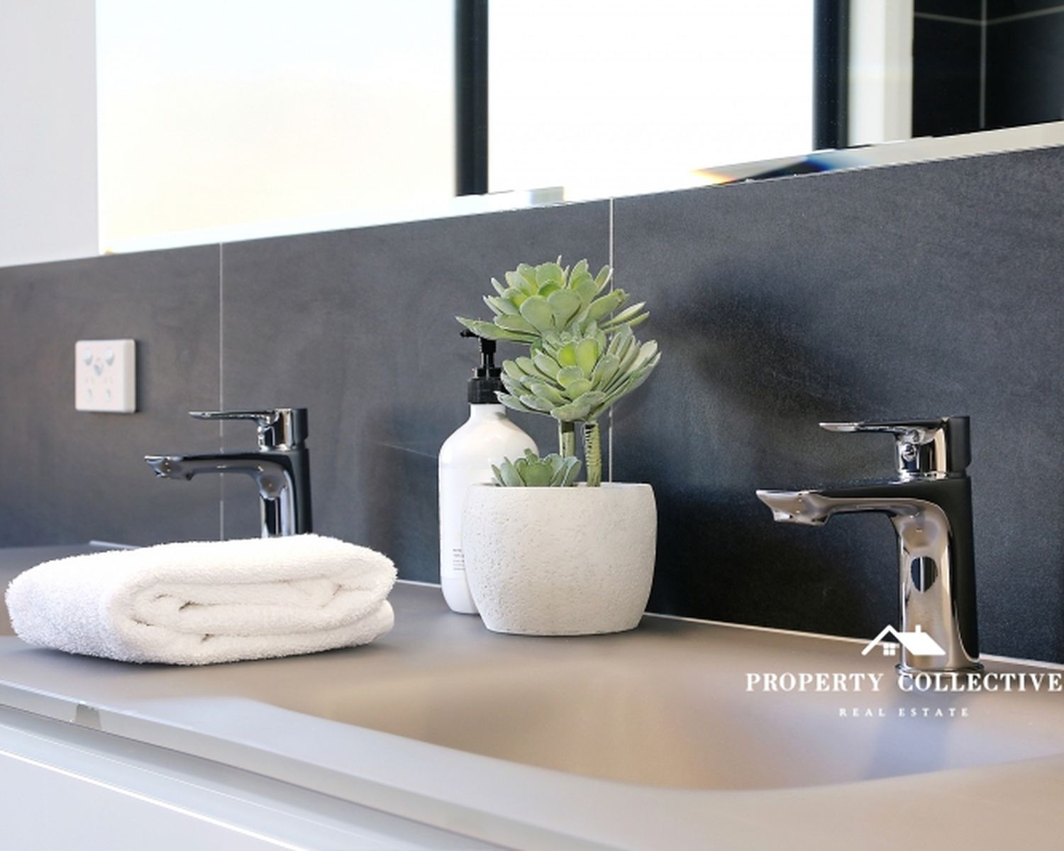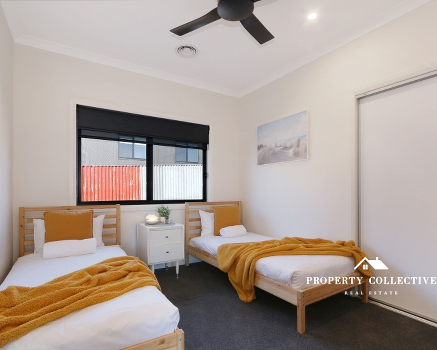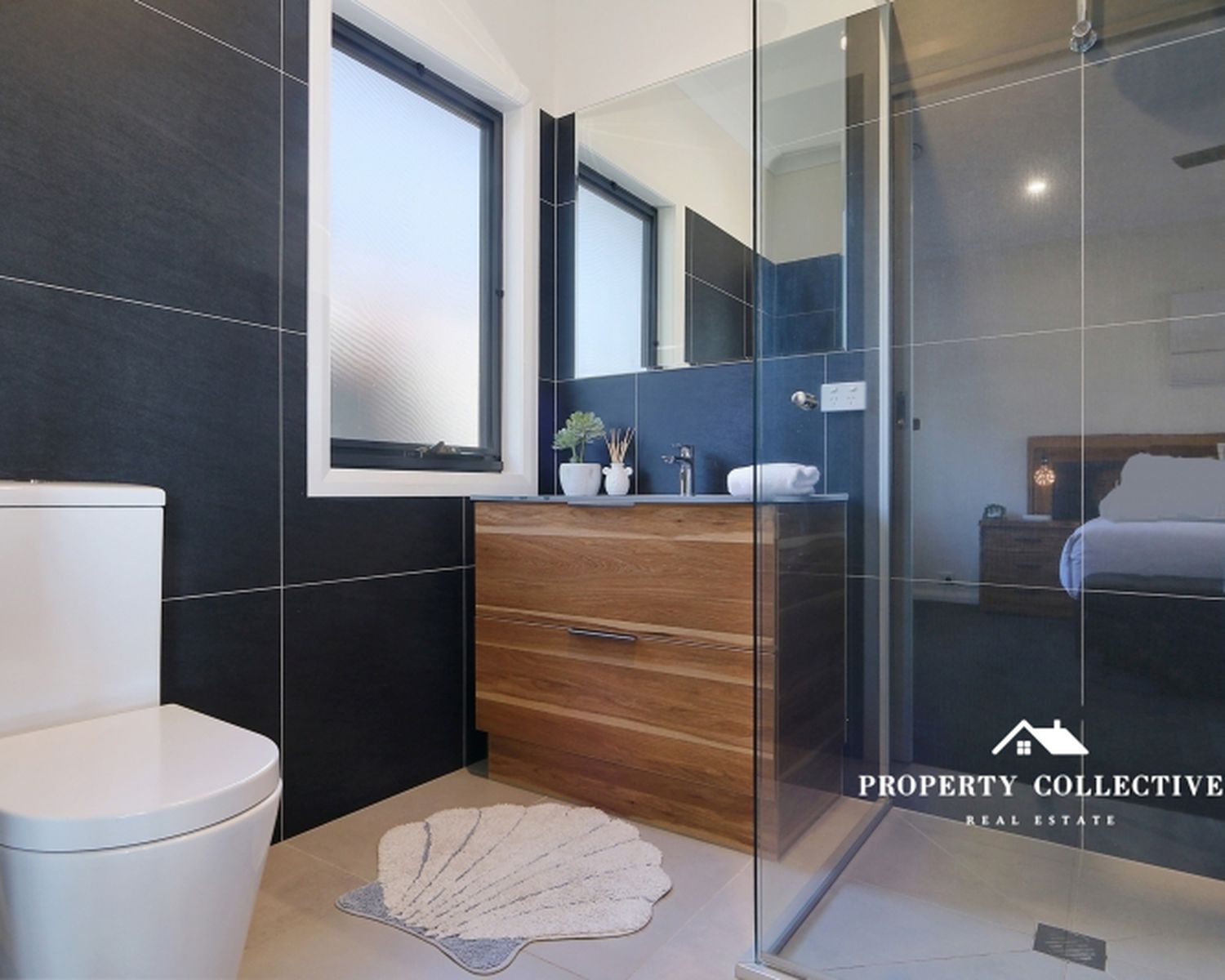 At the heart of the home, the kitchen is both stylish and functional, featuring soft-close cabinetry, quality stainless steel appliances, sleek bench tops and a generous 900mm electric oven with gas cooktop — ideal for entertaining or everyday living. Two separate living zones provide flexibility for families or professionals, with seamless zoning for comfort and privacy.