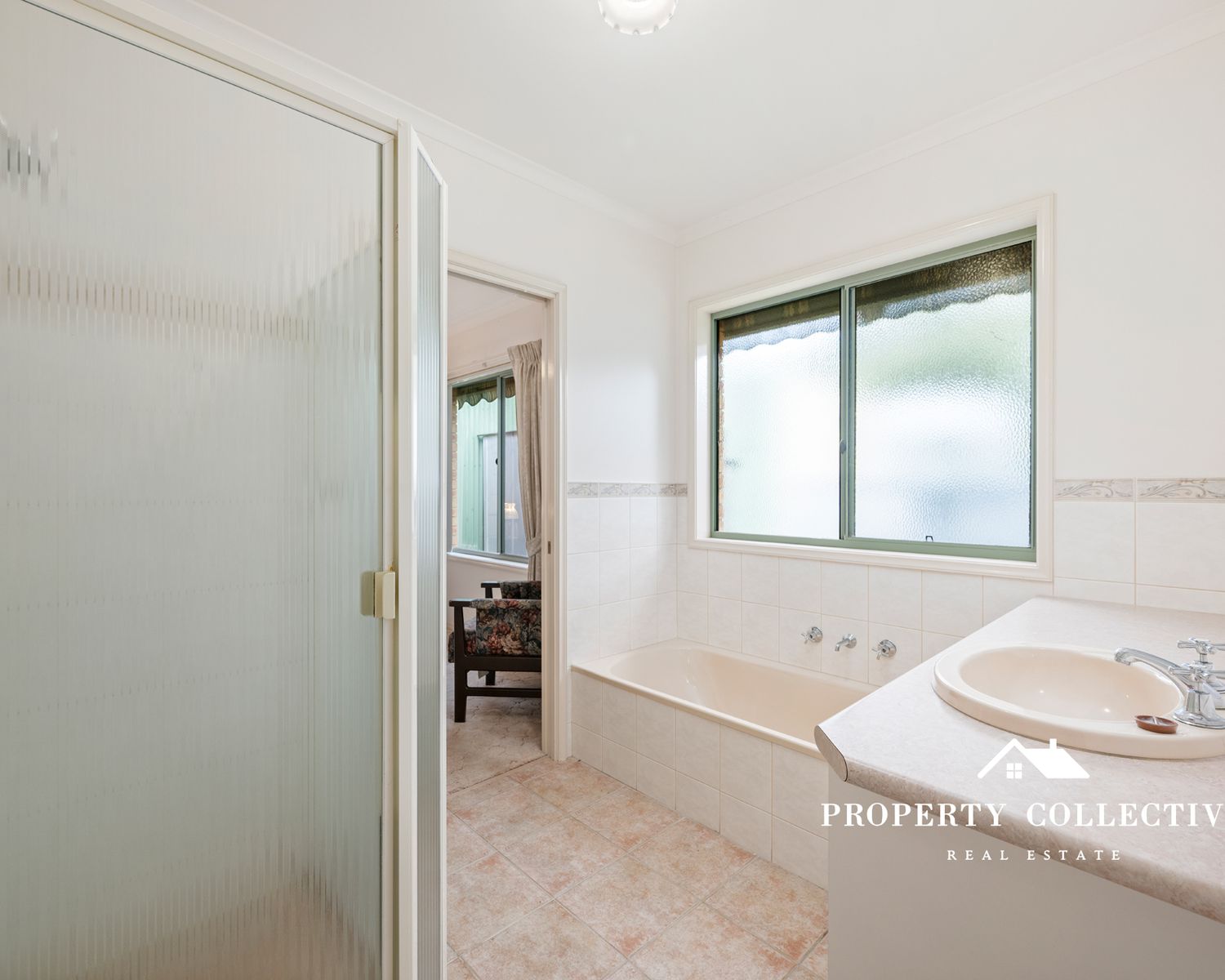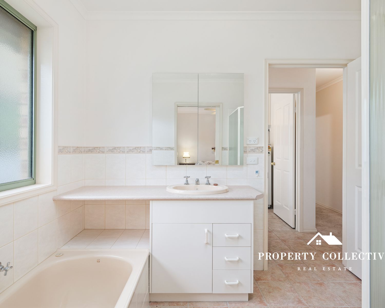 Accommodation comprises three bedrooms, including a master bedroom with built-in robes and two-way access to the central bathroom, complete with shower, bath and vanity. The second bedroom offers a single built-in robe, while the third is a generous double with double built-in robes. A separate toilet, hallway linen cupboard, and a well-sized laundry with external access and storage enhance the home’s functionality.