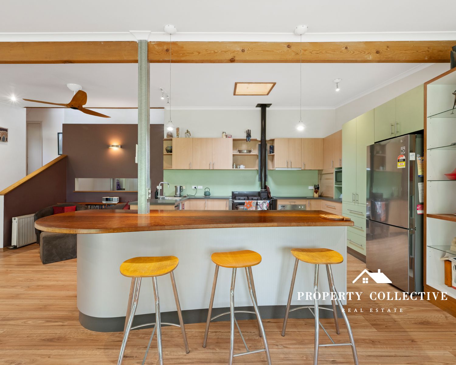 This thoughtfully designed split-level home combines eco-conscious living with comfort and style, set on a generous 2,637 sqm block. Built in the early 1980s it’s perfect for families seeking space, light, and energy efficiency in beautiful Beechworth.